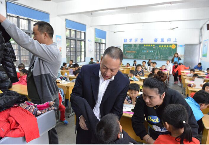 2015年11月4日中午,一場秋雨迎來了初冬的寒冷,但望里北岙小學(xué)校園內(nèi)一片歡聲笑語,因?yàn)樘煨艃x表集團(tuán)和民健社的愛心志愿者來到了這里,為在這里上學(xué)的百余名外地民工孩子送上了一份愛心禮物。