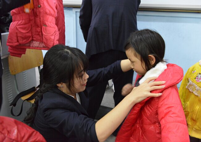 為了能讓每個孩子都能擁有禮物,愛心志愿者們讓孩子們排好隊(duì),精心幫孩子們挑選適合的衣服。天信儀表集團(tuán)黨委副書記鄭成平找到一件紅色羽絨服,在排在最前面的小女孩身上比試了一下:這件衣服很漂亮,我來幫你穿。小女孩乖巧的配合,并用稚嫩的童聲說了聲謝謝叔叔,穿好后一路蹦蹦跳跳的回到了自己位置上。志愿者陳書球是位20多歲的小伙子,還未婚,這是他第一次給小孩子穿衣服,難免有點(diǎn)笨手笨腳,但是穿得特別細(xì)心。志愿者黃君長相甜美,受到了孩子的喜愛,當(dāng)她拿起一件外套這件衣服有沒有哪位同學(xué)想試穿下?孩子們馬上爭相恐后地舉手:我要!我要?。∥乙惨?。看著孩子們臉上一個個洋溢著開心的笑容,愛心志愿者也發(fā)自心底的感到快樂和開心。